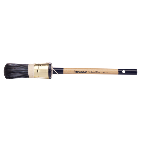 Ronde kwast van gemodificeerde polystervezels, geschikt voor watergedragen lakken en beitsen.