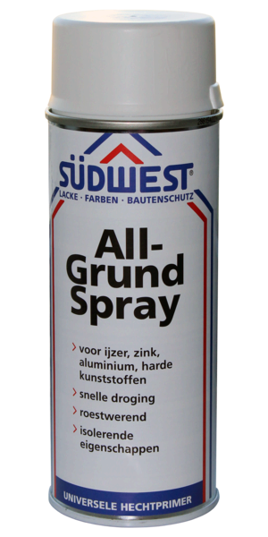 Sudwest allgrund spray is een universele roestwerende hechtprimer. De Südwest allgrund spray is geschikt voor vele ondergronden die overschilderbaar zijn met alle mogelijke verfsystemen.