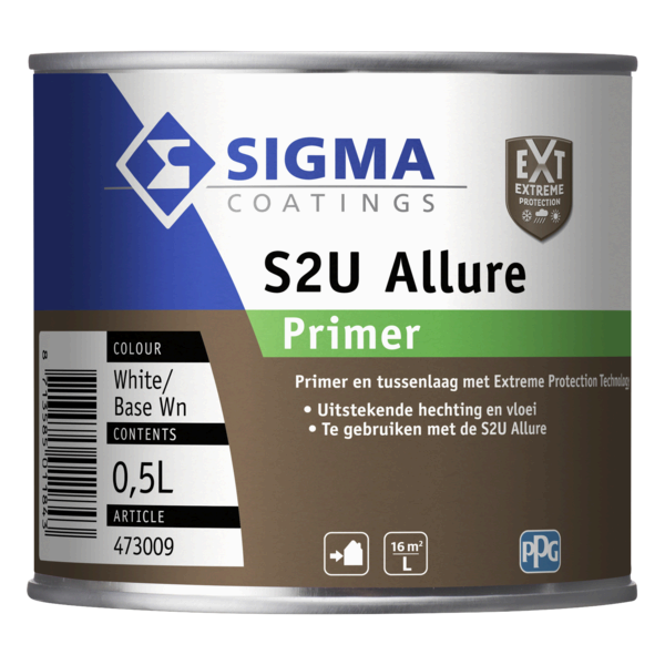 Sigma S2U Allure Primer is een sneldrogende, veelzijdige grondverf voor buiten. Het Dual Guard System biedt tot 10 jaar onderhoudsarm houtwerk. Geschikt voor hout, metaal en kunststof. Verkrijgbaar in 0,5 L, 1 L en 2,5 L.