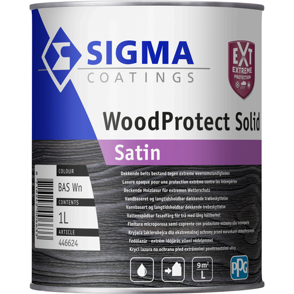 Sigma WoodProtect Solid Satin is een watergedragen, dekkende beits voor buiten met zijdeglans-afwerking. Ideaal voor rabatwerk, gevelhout, tuinhuizen en ander houtwerk dat kleur, glans én bescherming verdient.