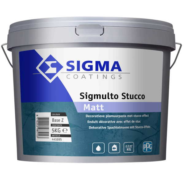 Sigma Sigmulto Stucco Matt is een decoratieve, watergedragen pleister voor binnen, waarmee je muren kunt afwerken met een elegante stucco- of marmereffect-look. Perfect voor representatieve binnenruimtes.