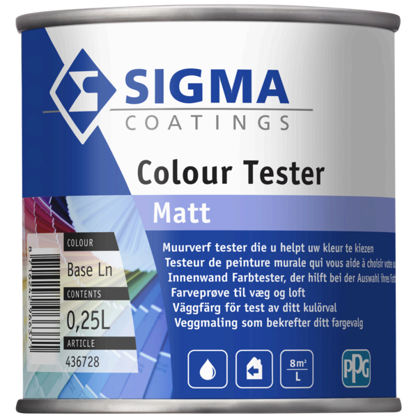 Met de Sigma Colour Tester kun je elke gewenste Sigma-kleur eerst op de muur uitproberen, zodat je zeker weet dat de kleur in jouw ruimte goed uitpakt. Verkrijgbaar in 0,25 L.