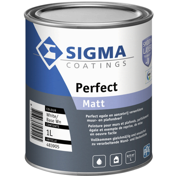 Sigma Perfect Matt is matte én duurzame muurverf voor binnen o.b.v. 100% acrylaatdispersie. De verf is aanzetvrij, bij te werken zonder kleurverschil en geschikt voor wanden en plafonds. Koop Perfect Matt voor een egaal resultaat.